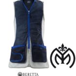 Chaleco para tiro al plato fabricado en algodón y malla transpirable. Este chaleco para tiro al plato ambidiestro es resistente al desgaste. Prenda Beretta Uniform Pro de máxima calidad. Dispone de detalles como ribetes azules clásicos y la malla transpirable en gris plateado.